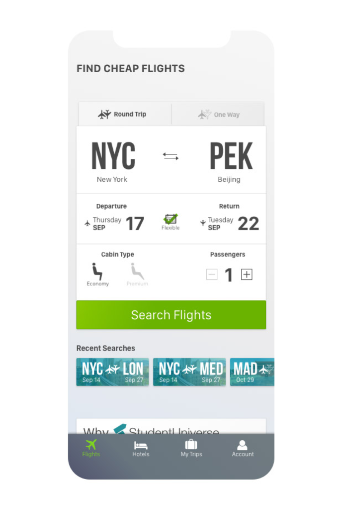 StudentUniverse Apps design